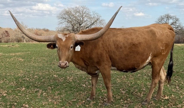 Sired by "Hubbells 20 Gauge" the 2022 Futurity Earnings Winning Champion and Cash Cow Producer. Her Dam is one Special Cow "Red River Summer Wages" is a very complete cow measuring 90" ttt plus with well over 100" total horn. We recently sold her Granddaughter "Helm Confetti" ( Dam is full sister to Summer Bliss ) for $40,000 at the 2023 H/V FWSS. Top and Bottom this girls pedigree is stacked with Maternal Production Power. She will have a magnificent rack of horns at maturity, you can count on it !