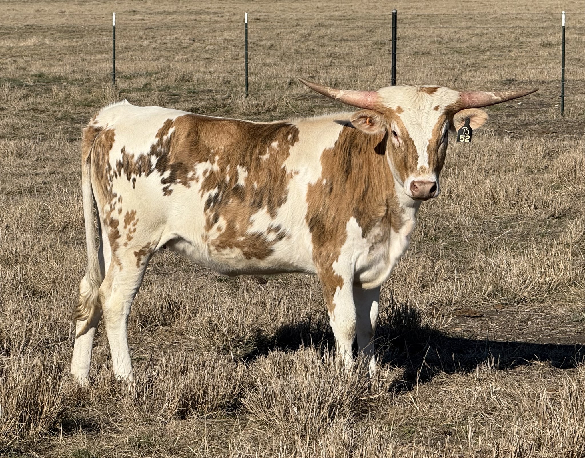 52 TJ x LR Lucy 91 brings a genetic blend built for size, structure, and horn growth. This heifer stands tall and correct, showing the same presence and potential as her sire, TJ Bux, one of the most talked-about futurity champions in recent years. From day one, she’s demonstrated balanced conformation, solid bone, and that unmistakable Buxton look — calm disposition, athletic movement, and tremendous depth of body.